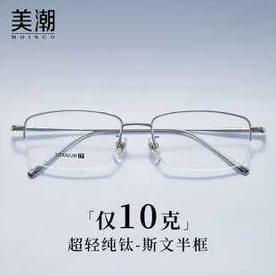 可配度数银色斯文方框专业网上配镜 超轻纯钛商务半框眼镜近视男款由