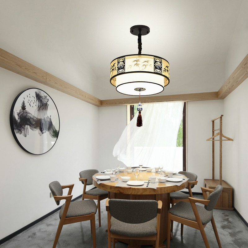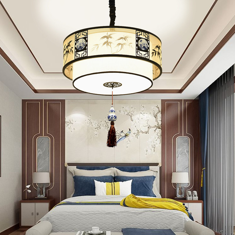 书房吊灯圆形现代小客厅灯房间卧室灯中国风圆桌餐馆餐吊灯 新中式由