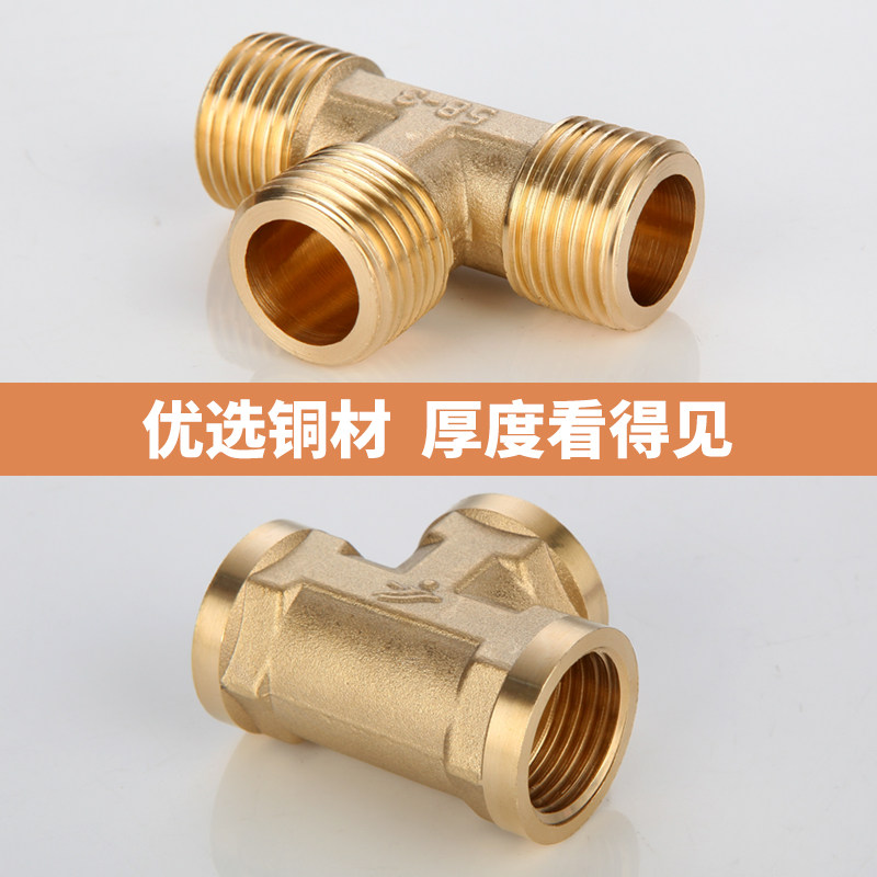 全铜加厚4分三通接头三内丝一内二外三外丝燃气管热水器水管配件