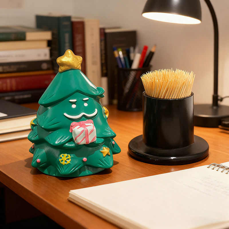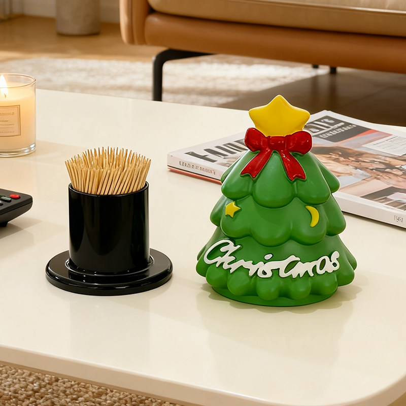 饰品 圣诞节礼物圣诞树牙签盒桌面小摆件客厅棉签收纳筒罐高级感装由