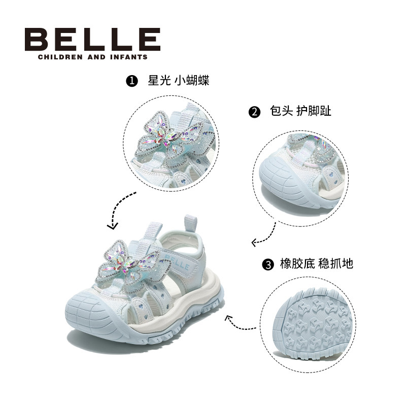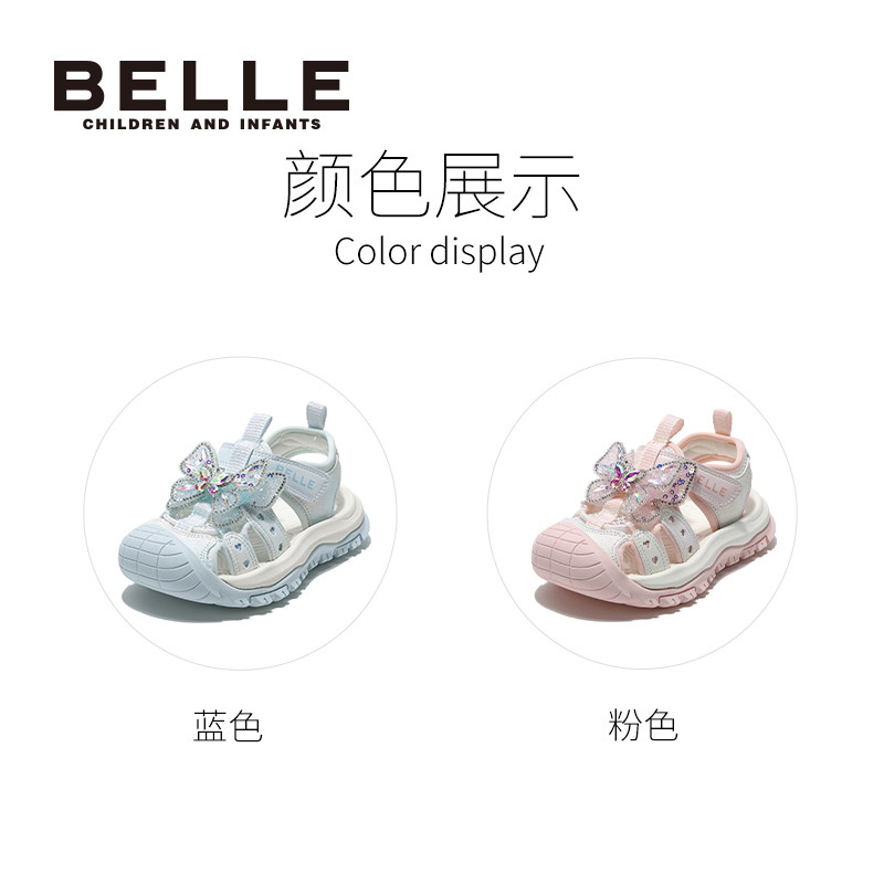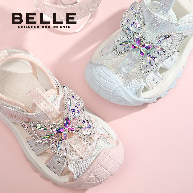 闪钻蝴蝶结软底沙滩鞋 百丽童鞋 甜美风包头凉鞋 女童夏季 运动宝宝鞋由