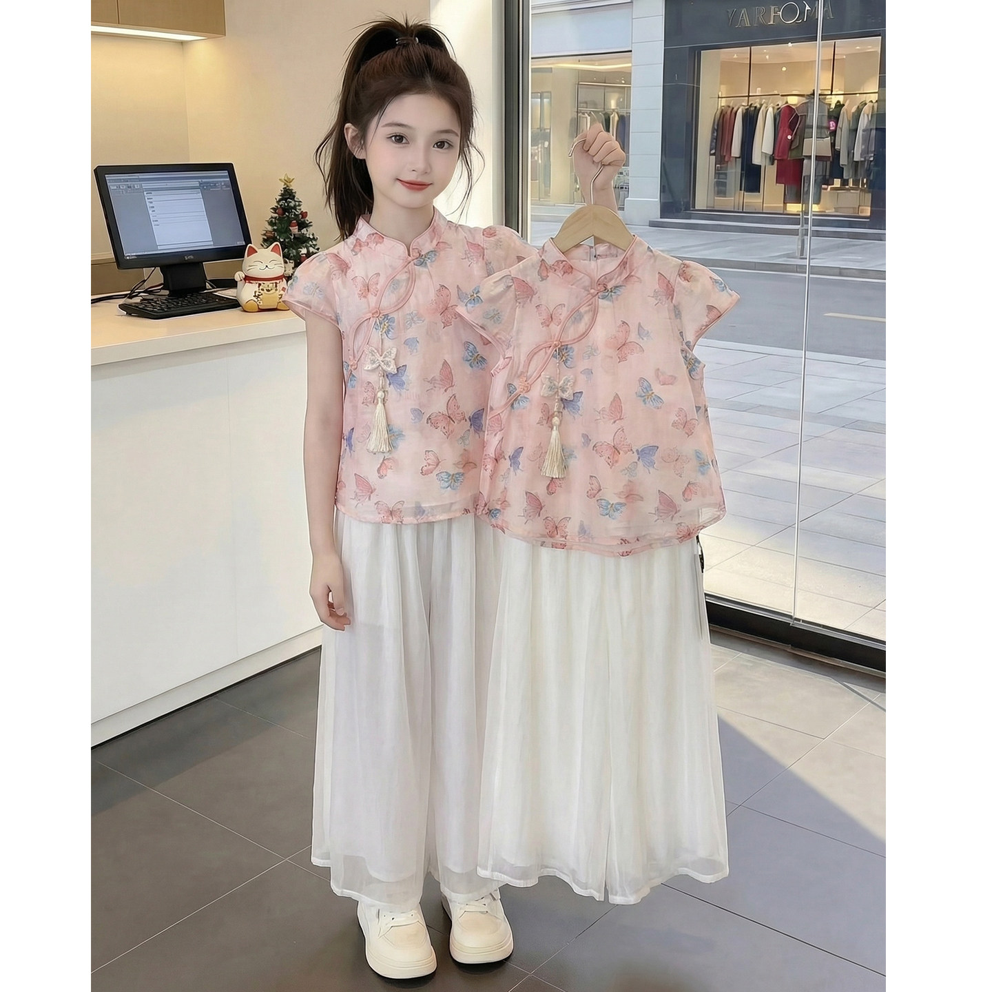 新中式 女童夏装 两件套 女孩夏季 儿童洋气汉服国风爆款 套装 2026新款