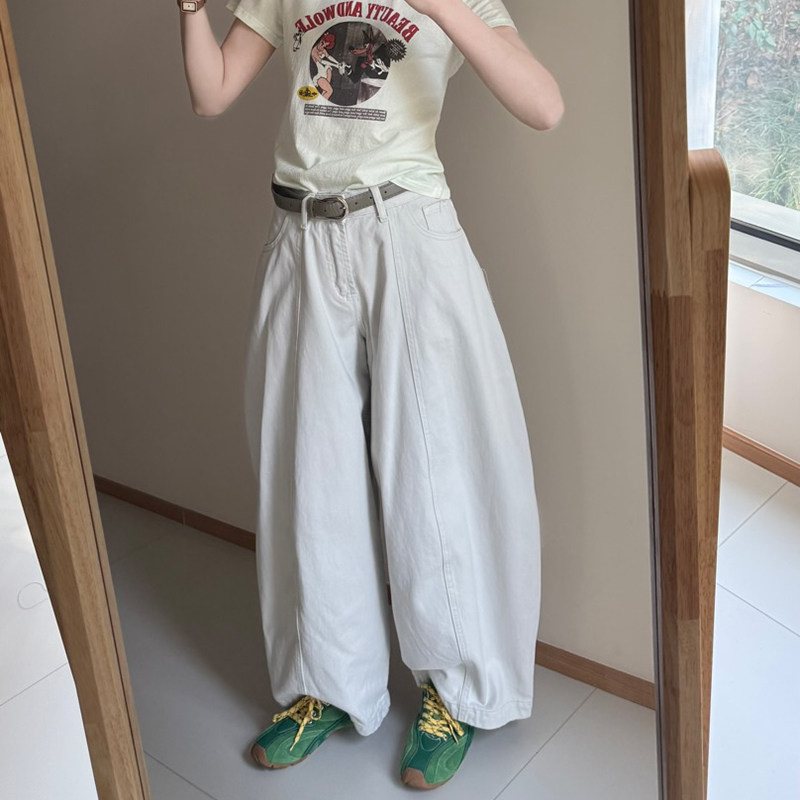 女高腰宽松显瘦休闲百搭直筒长裤 白色阔腿牛仔裤 pusumede自留款