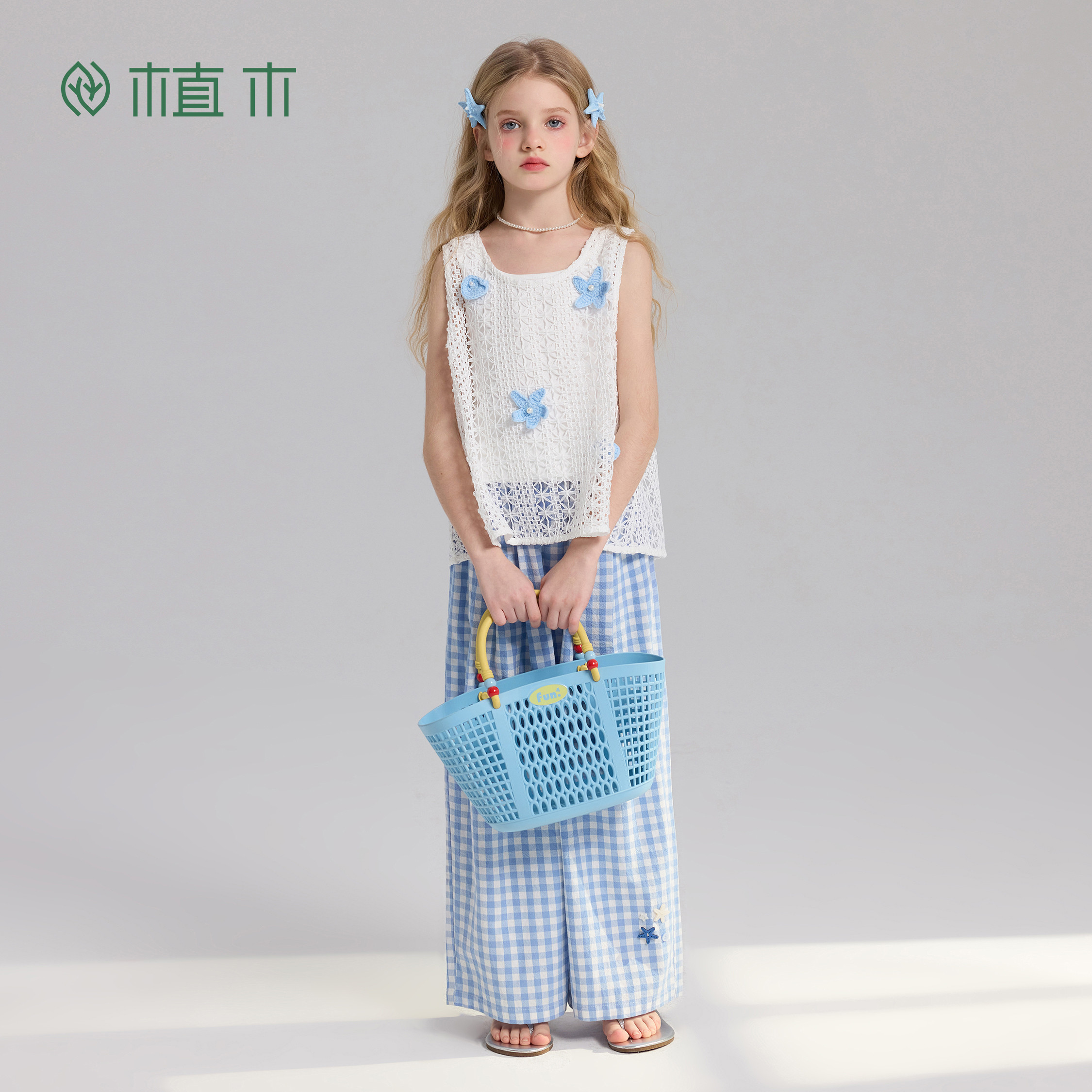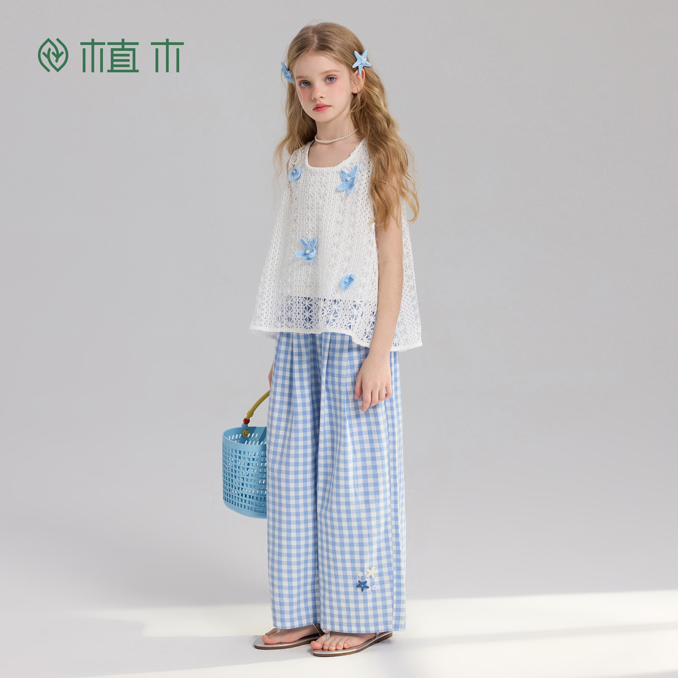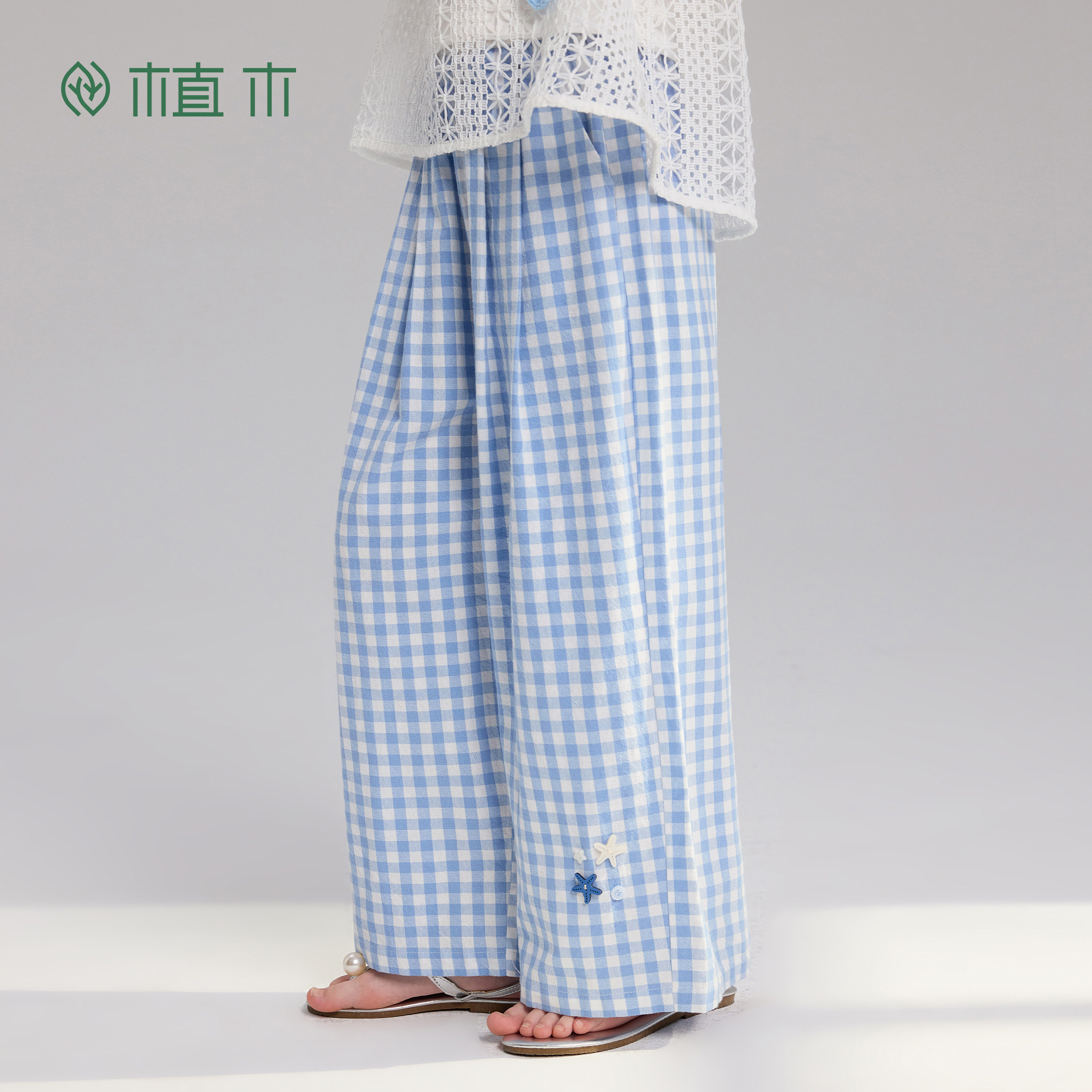 青少年夏季 植木 新 儿童直筒裤 女童休闲长裤 晴沙漫行 格纹设计由