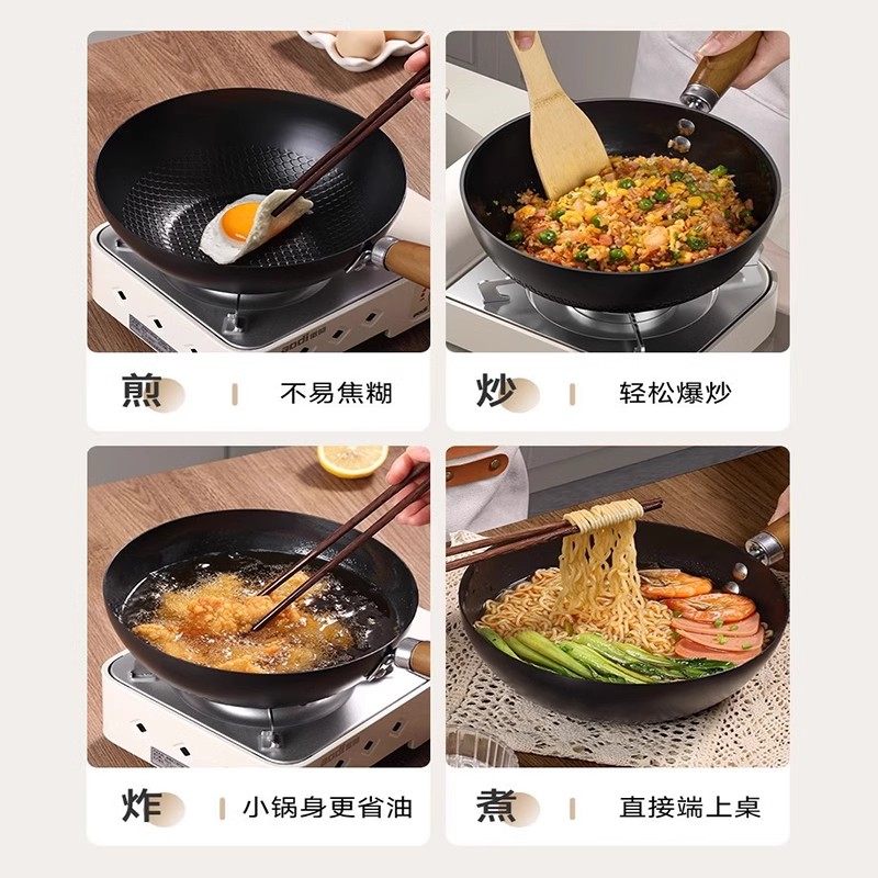 九阳铁锅无涂层炒锅家用炒菜锅不易粘锅电磁炉专用燃气灶旗舰店炊