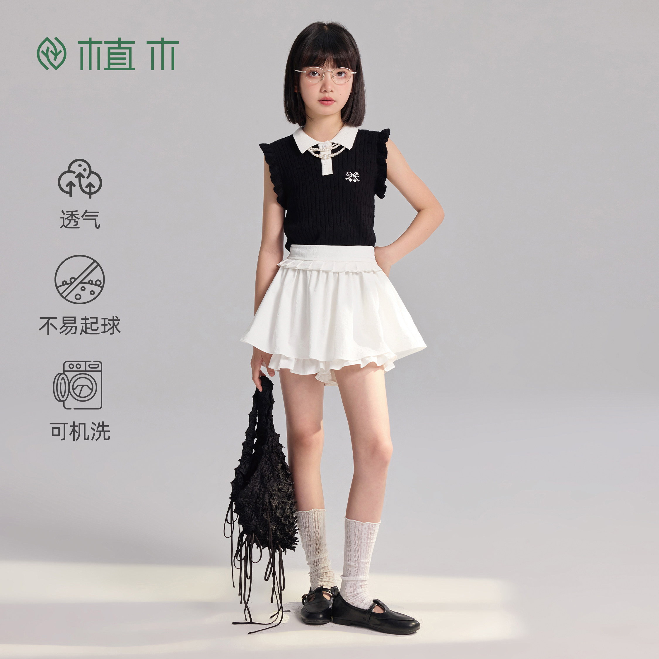 女童无袖 丝光亲肤工艺 夏夜低语 青少年2026夏季 新款 背心 植木