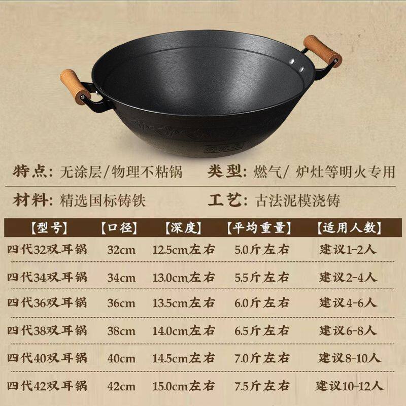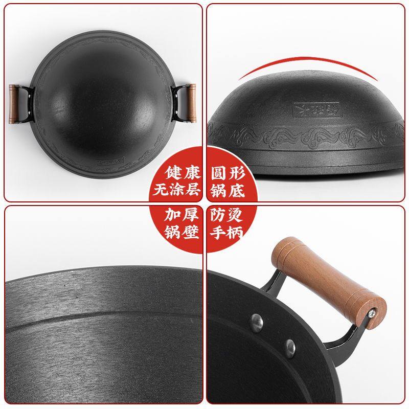 为您提供商品双耳铁锅家用传统手工灶台瓦斯炉适用不沾锅无涂层铸铁炒锅 老式的详细介绍,