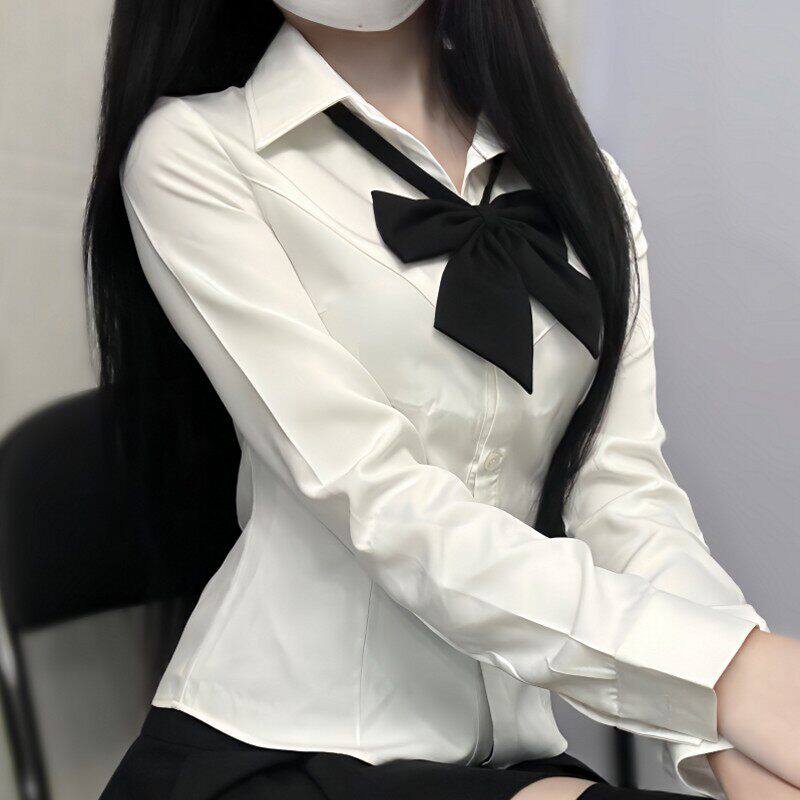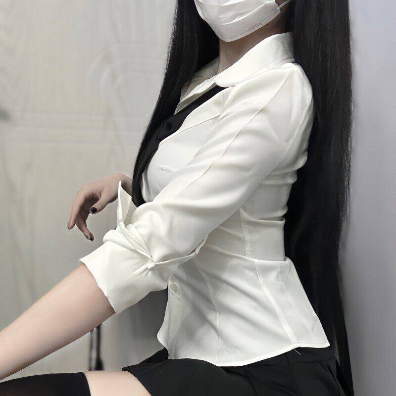 通勤白色工作服jk短袖 川岛田家女款 大尺 显瘦衬衫 修身 收腰衬衫 长袖由