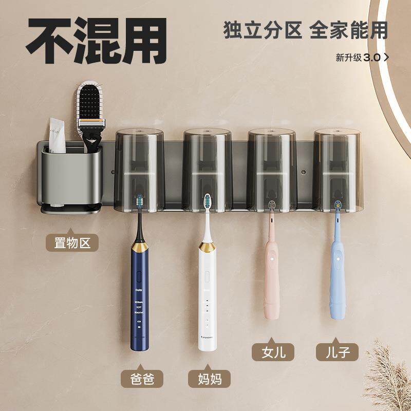 免打孔卫生间牙具座牙膏收纳浴室 牙刷牙杯壁挂置物架电动牙刷套装