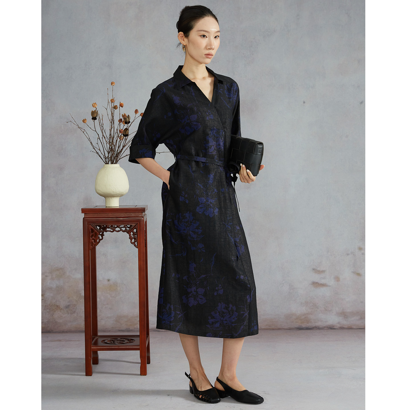 为您提供商品真丝连衣裙国风衬衫 裙 100%桑蚕丝龟纹香云纱翻领中袖 SILVIYE溯也的详细介绍,