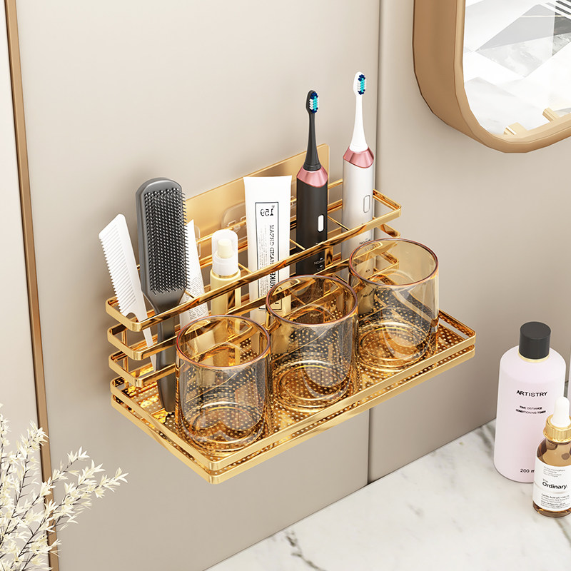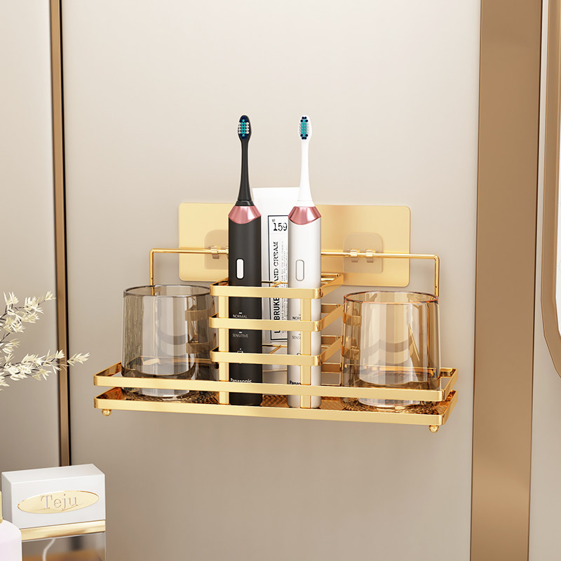 为您提供商品免打 电动牙刷置物架牙杯放杯子漱口杯架子轻奢牙刷架S挂架壁挂式的详细介绍,