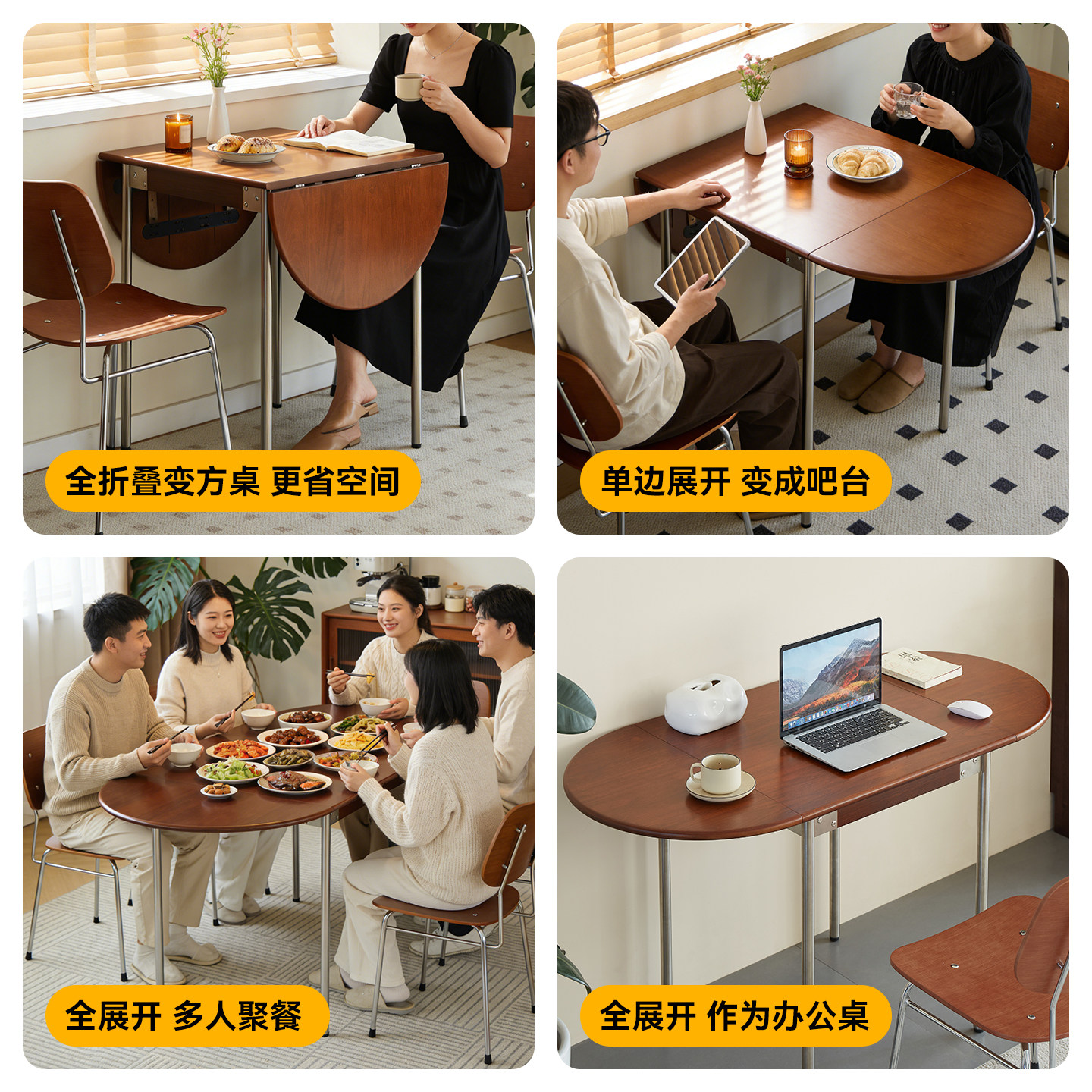 为您提供商品实木折叠餐桌子家用小户型长方形可伸缩中古风包豪斯不占空间小桌的详细介绍,