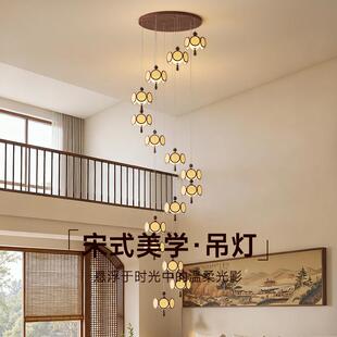 设计师公寓别墅复式 楼梯间旋转长吊灯具 吊灯楼梯灯2025新款 新中式