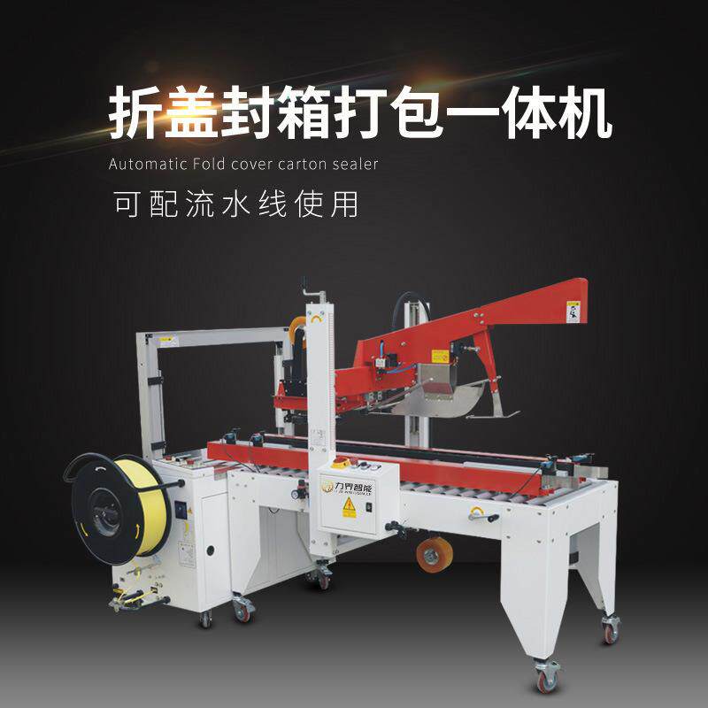 全自动折盖一字工字封箱打包一体机纸箱折箱胶纸封口捆扎带机由