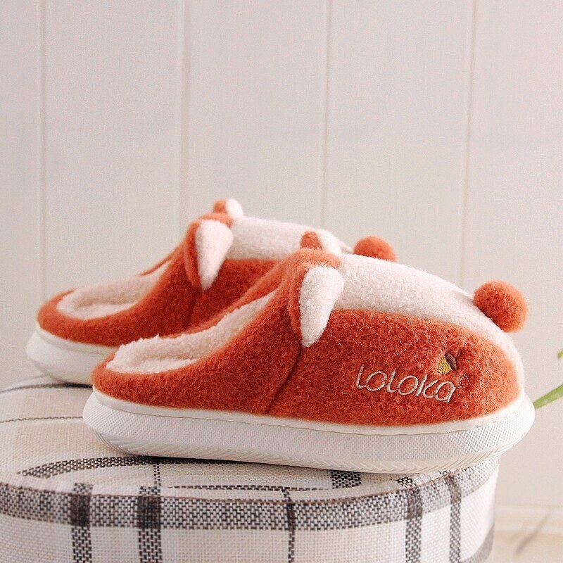 ins男女时尚 细细条 情侣棉拖鞋 可爱小狗冬季 百搭防滑居家月子棉鞋