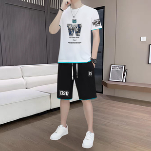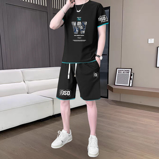 夏季 2026新款 t恤男士 透气薄款 男生休闲套装 五分短裤 国潮短袖 大码