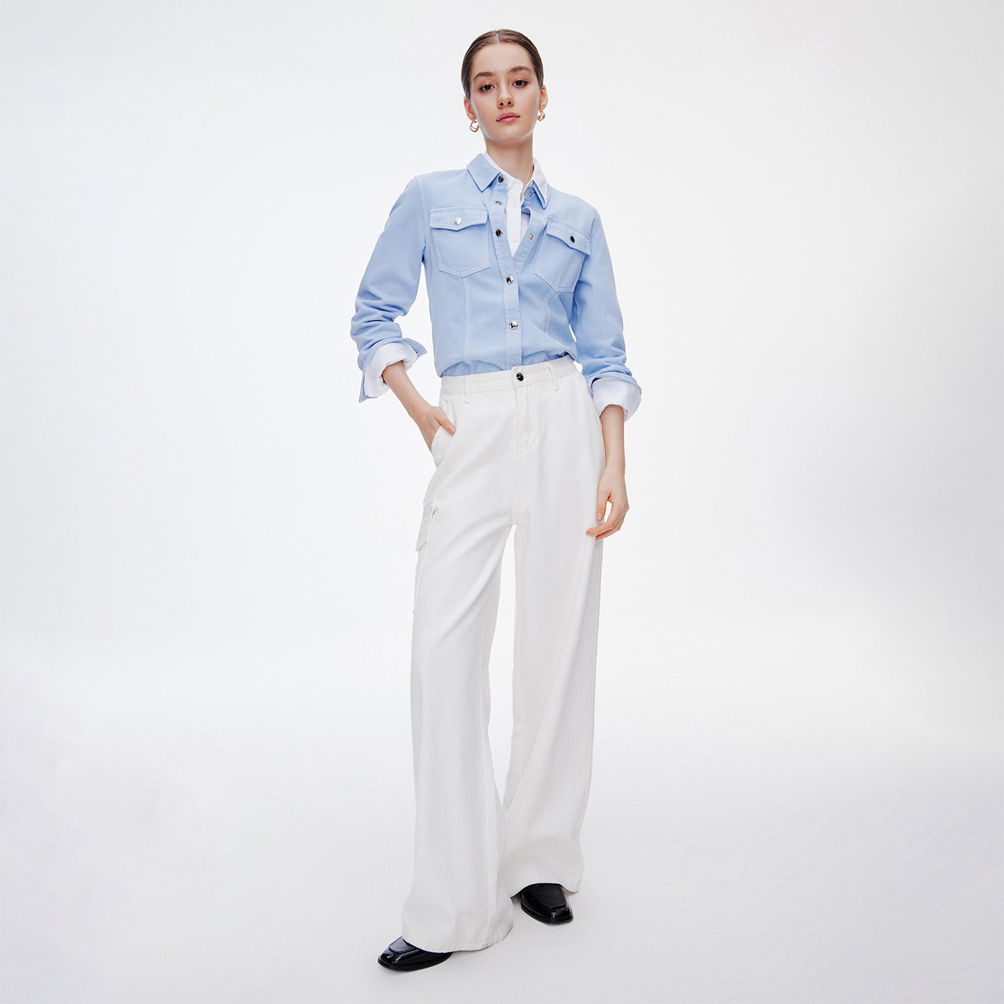 GIOVANNI 女士长袖 衬衫 双口袋通勤休闲牛仔衬衣外套 VALENTINO春季由
