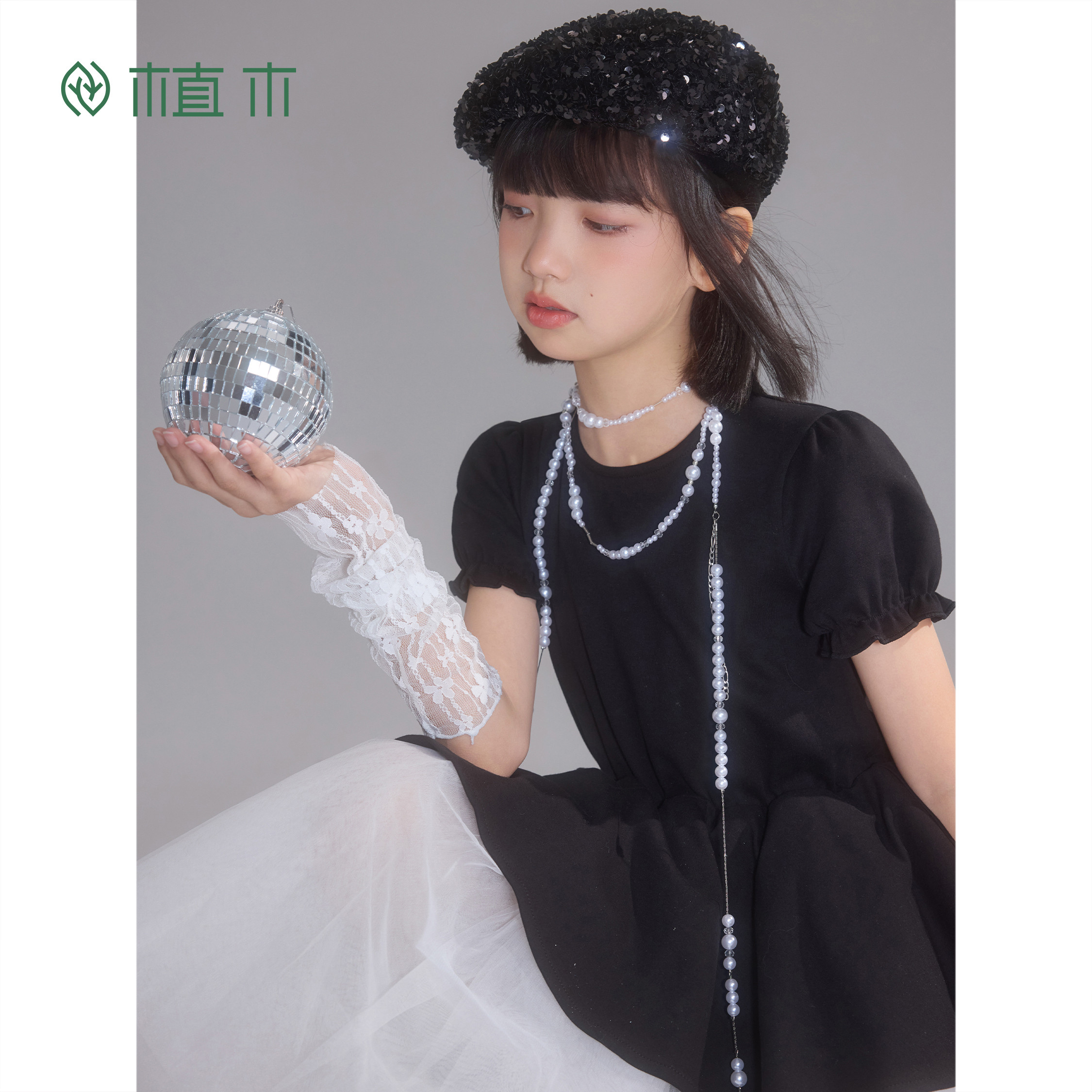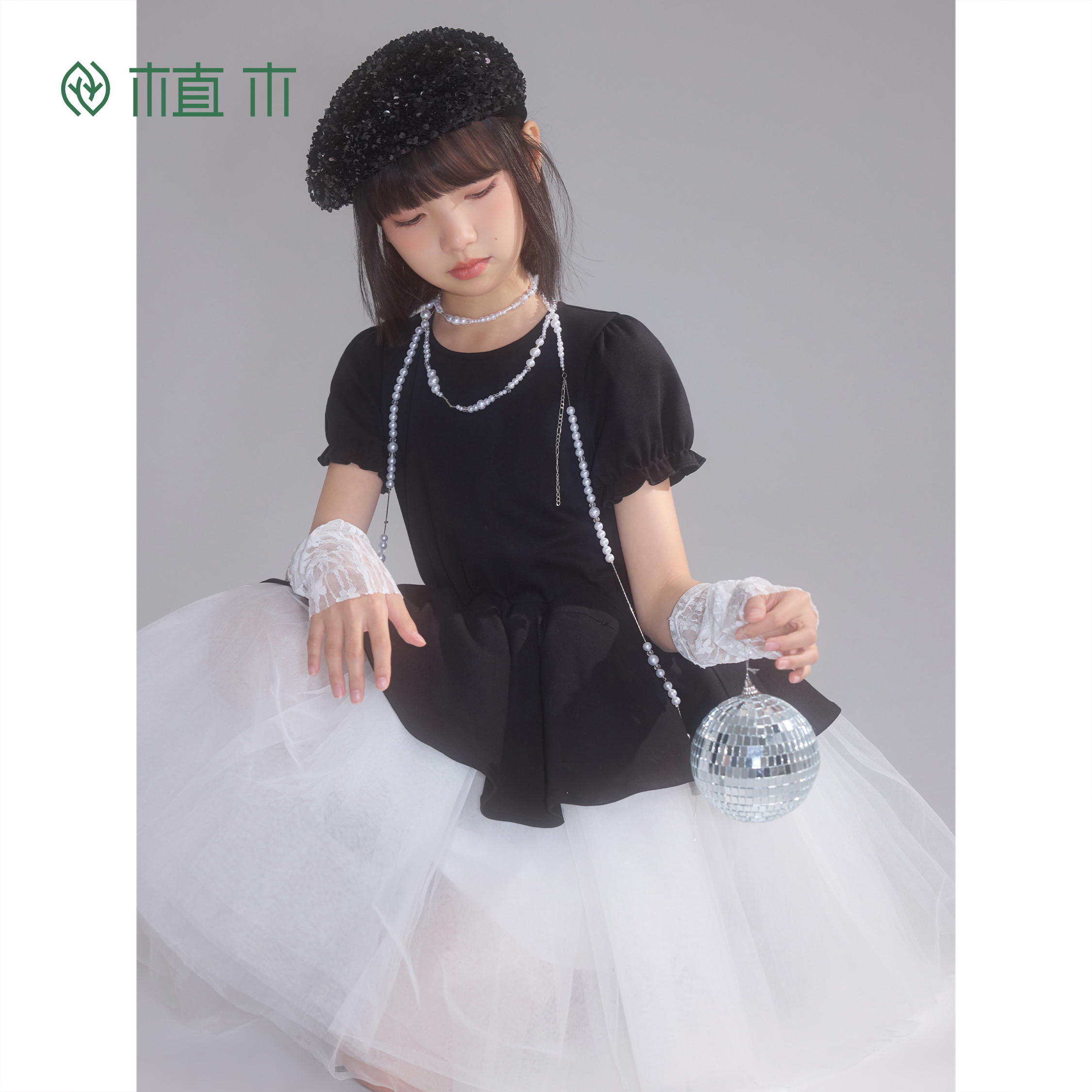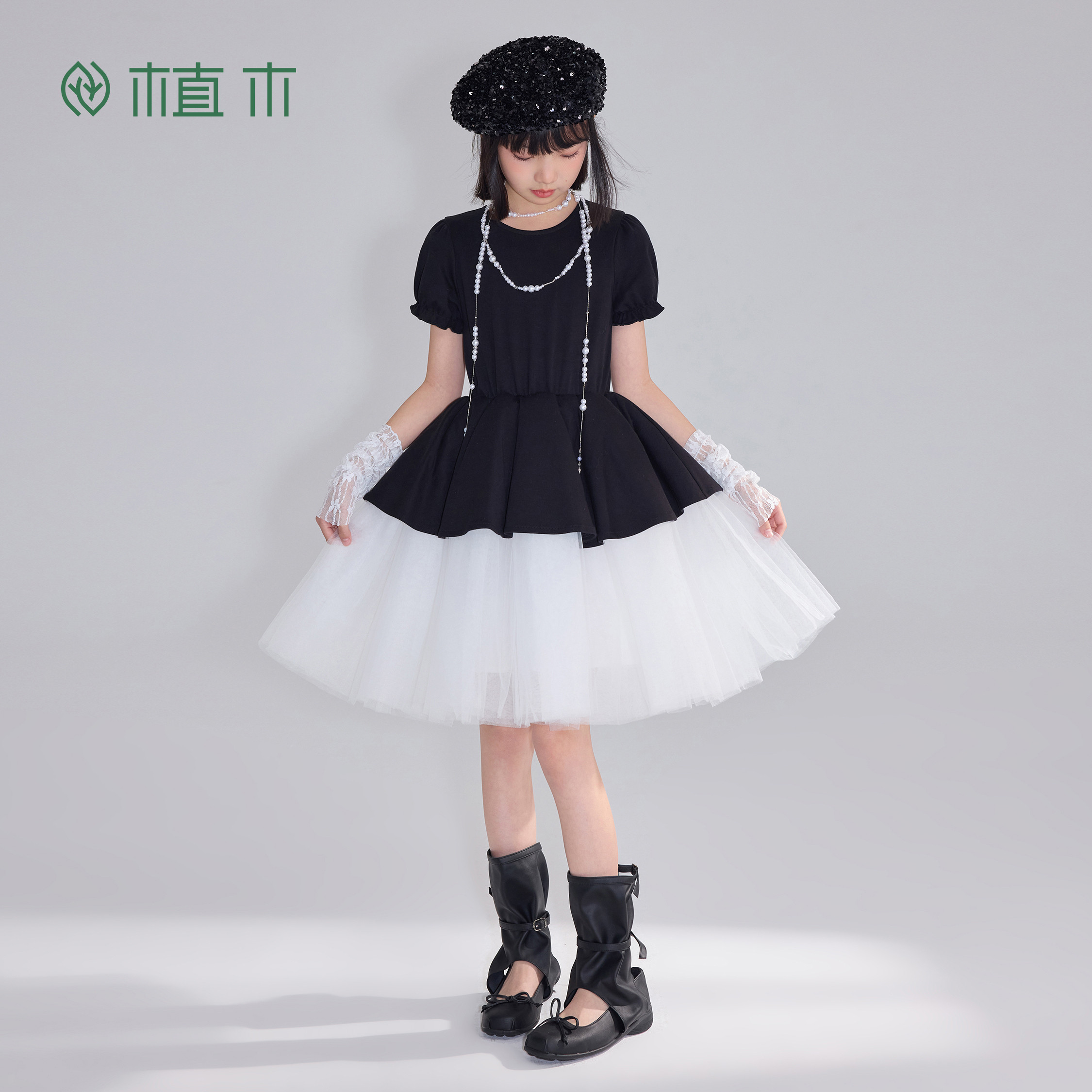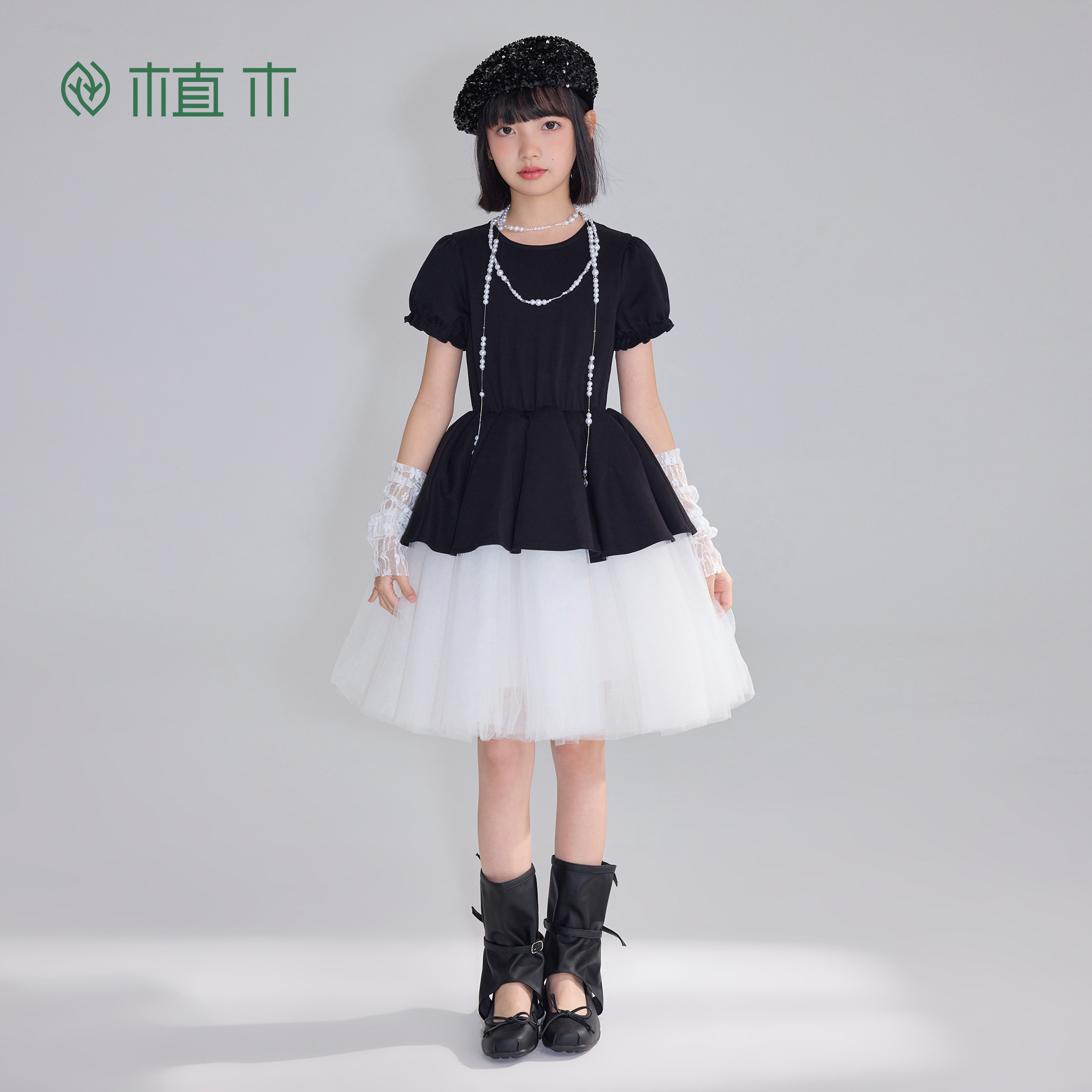 优雅 植木 黑纱漫汀 赫本风法式 女童连衣裙青少年夏新 花苞纱裙