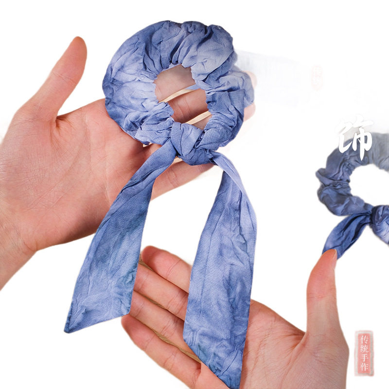 手工DIY扎染发圈材料包生日礼物头饰品飘带纯棉白色大肠发圈蓝染由