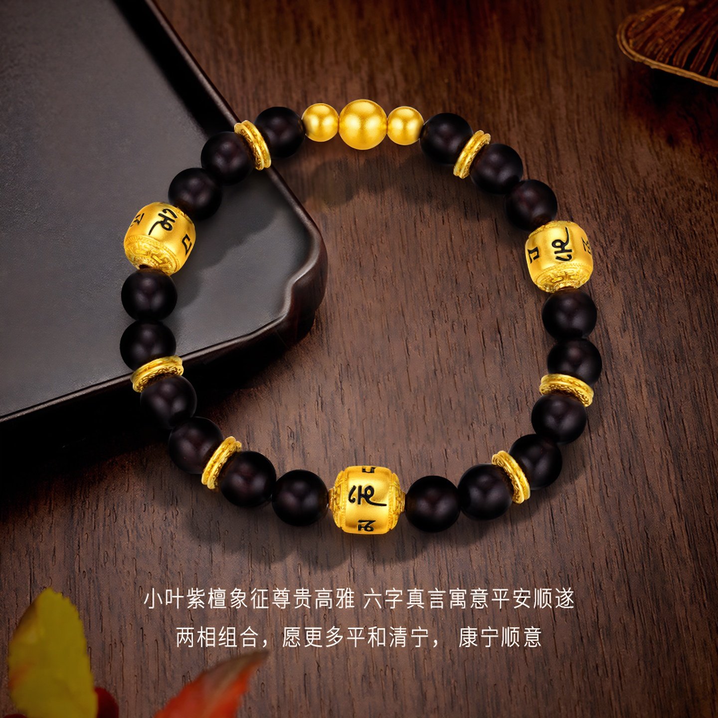金至尊六字真言黄金手链男士 小叶紫檀手串生日礼物送老公 足金999