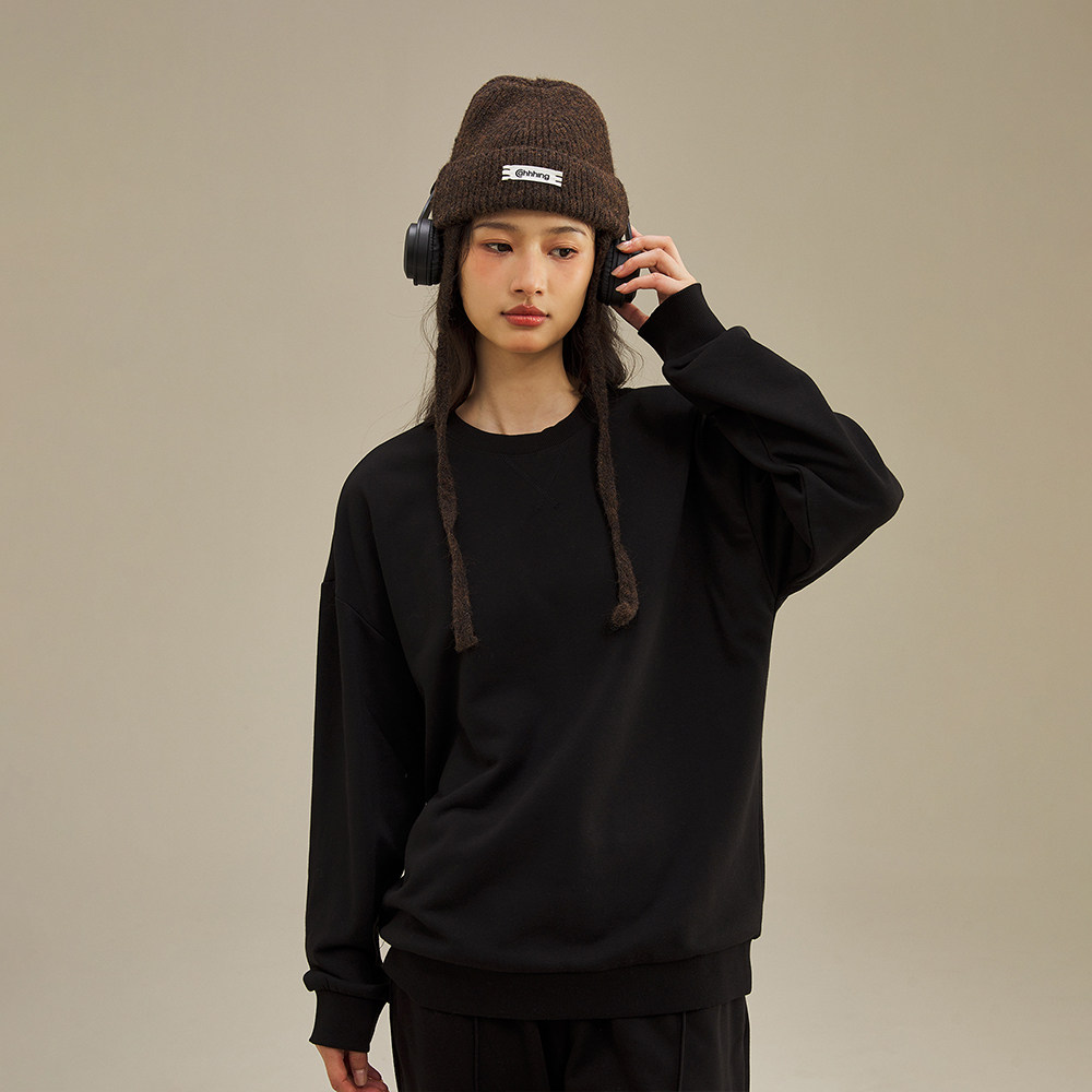 小众设计欧美风上衣 NNID毛圈棉纯色简约情侣圆领卫衣纯色百搭美式