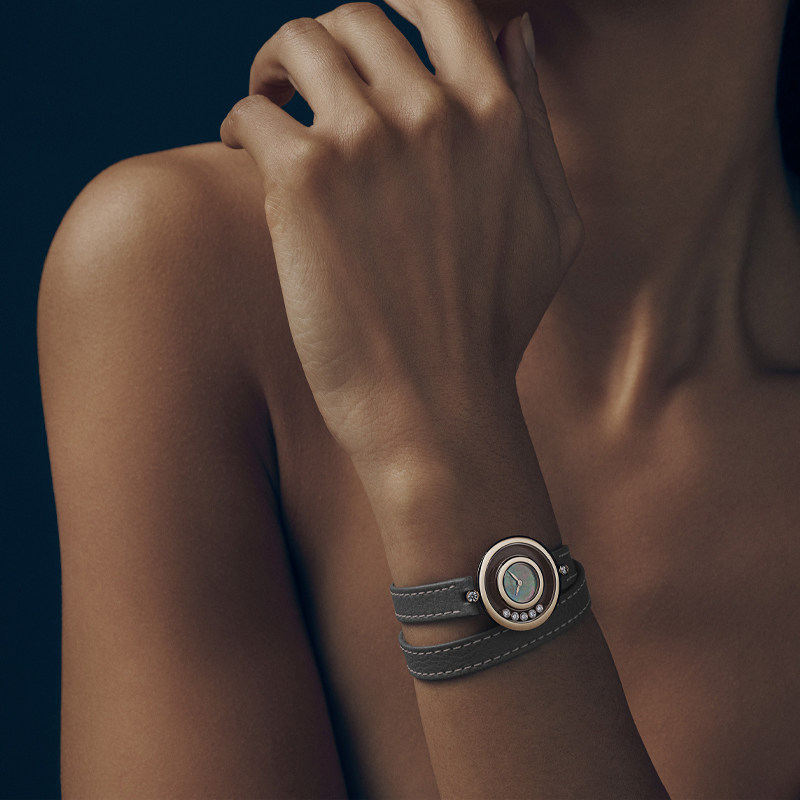 Chopard萧邦26mm母贝石英腕表灰双圈表带手表女生日礼物送女友由