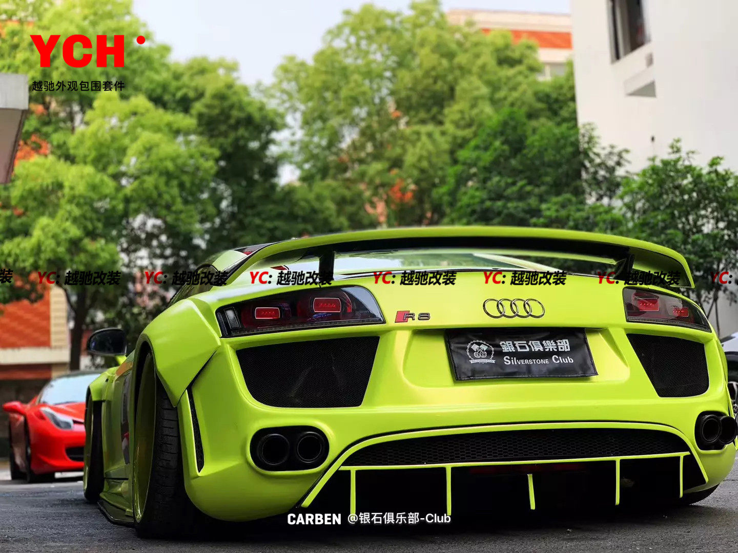 奥迪R8 regula宽体包围前杠后杠碳纤维侧裙前唇后唇尾翼机盖 改装由