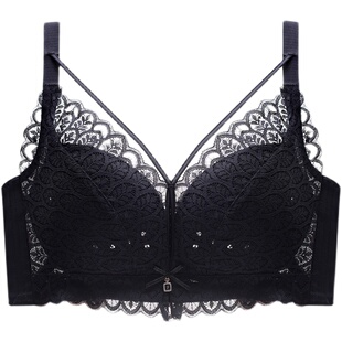 性感95D内衣聚拢收副乳防下垂胸罩无钢蕾丝大胸透气三扣文胸 大码