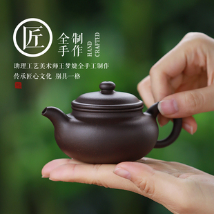 陶纹山屋宜兴紫砂壶纯手工全手工原矿老紫泥泡茶壶茶具扁腹仿古壶由