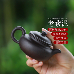 陶纹山屋宜兴紫砂壶纯手工全手工原矿老紫泥泡茶壶茶具扁腹仿古壶