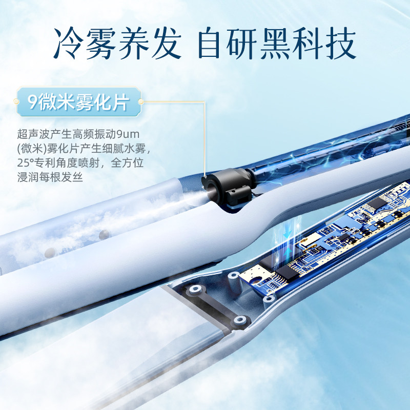 冷雾蒸汽直板夹直发卷发棒两用负离子护发加宽熨板直发夹板 乐程式由