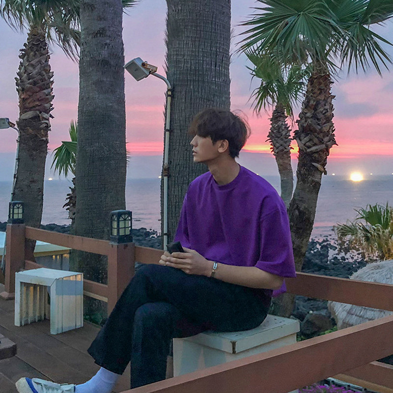 五分短袖 男T恤港风文艺bf男生潮流休闲体恤宽松纯色5分上衣打底衫由
