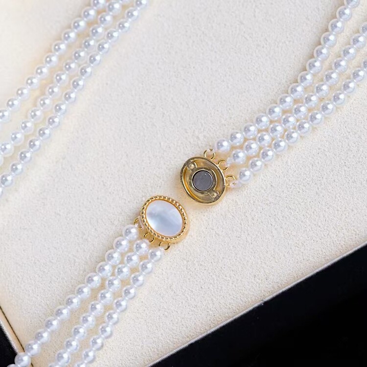 DIY配件珍珠项链扣子S925纯银扣头三排复古贝壳魔镜磁吸扣半成品由