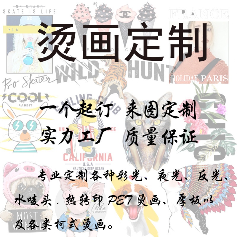 为您提供商品热转印烫画贴定制字母卡通柯式 烫印花大图案大号衣服t恤衣物服装的详细介绍,