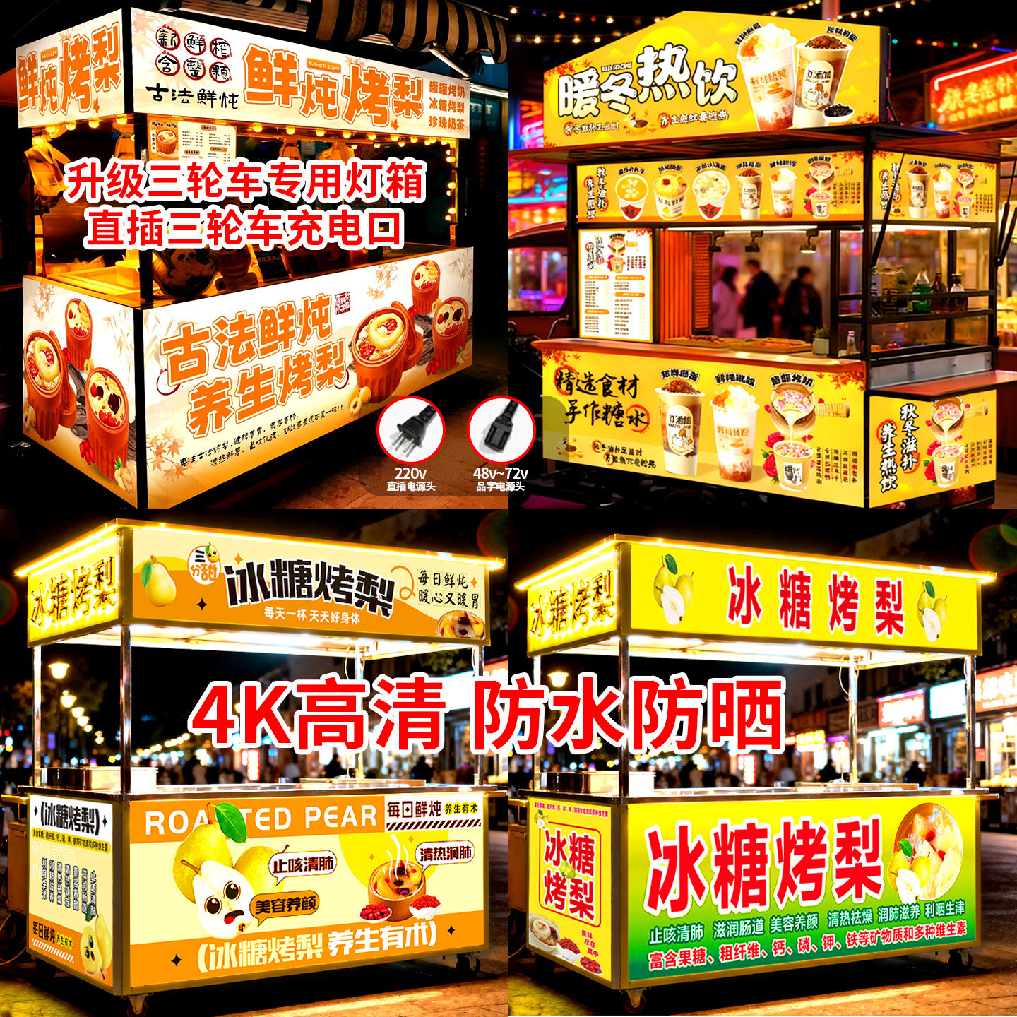 为您提供商品定制防水三轮车摆摊灯箱广告牌卡布软膜发光小吃推车烧烤夜市招牌的详细介绍,