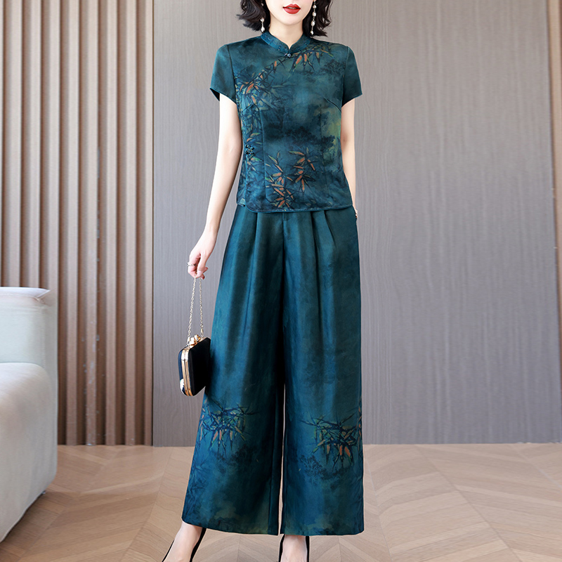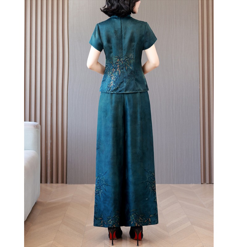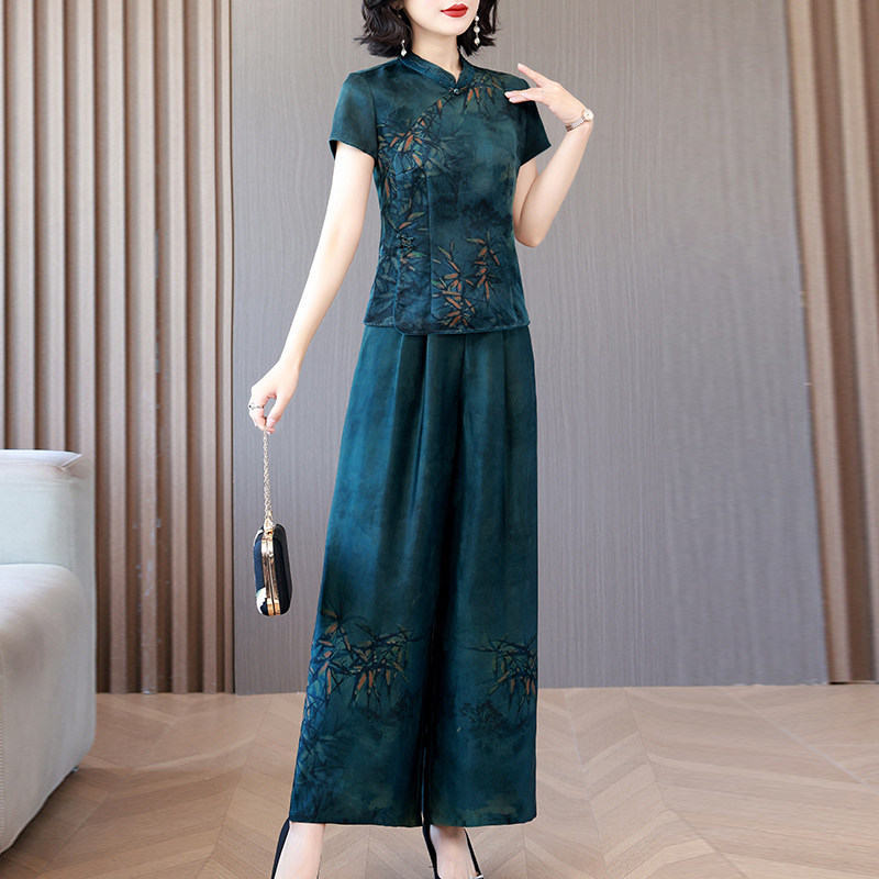 香云纱真丝套装 新款 气质妈妈中式 复古桑蚕丝定位花两件套 女夏季