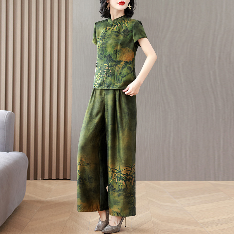 香云纱真丝套装 新款 气质妈妈中式 复古桑蚕丝定位花两件套 女夏季由