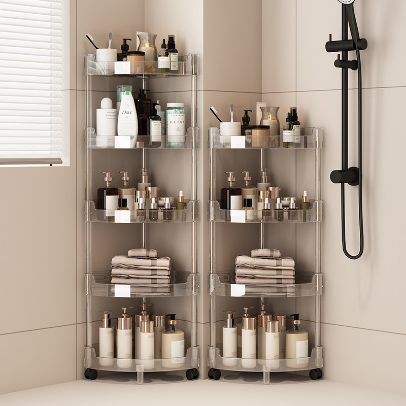 为您提供商品亚克力卫生间置物架落地浴室三角架夹缝收纳架家用厕所转角储物架的详细介绍,