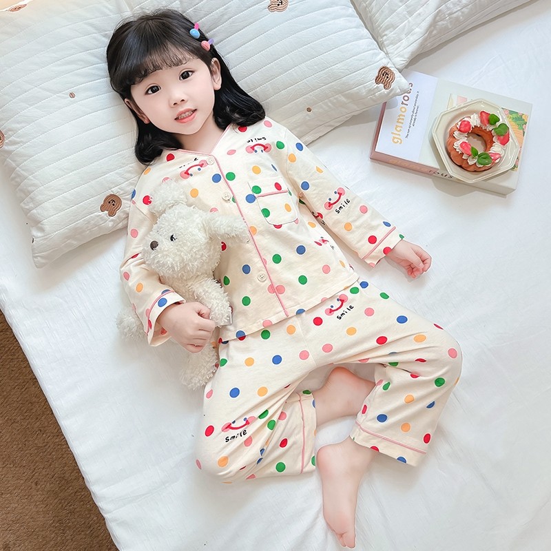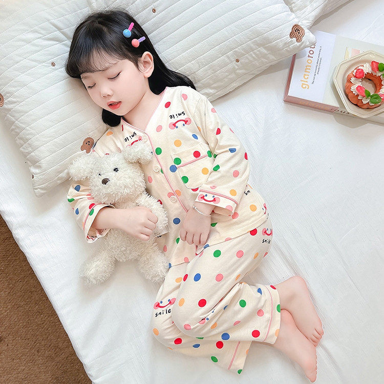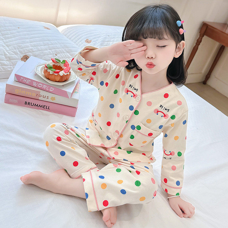 女宝宝长袖 女童春秋季 新款 睡衣套装 卡通洋气儿童家居服两件套 开衫