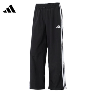 JE1306 adidas阿迪达斯女子三条纹黑色运动健身直筒长裤由