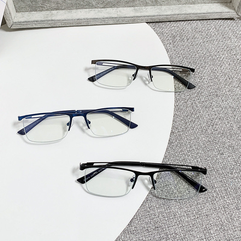 潮网上可配度数散光镜片防蓝光大脸眼睛架变色 半框近视眼镜框男款