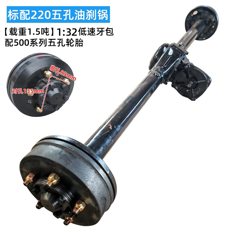 四轮餐车高低速变档驱动桥1.5吨3000w 电动三轮车油刹后桥改装