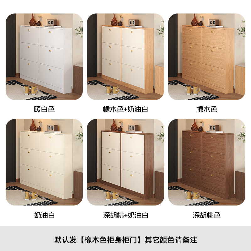 柜超薄靠墙一体橡木色家用门口大容量玄关收纳柜子 政补实木翻斗鞋由