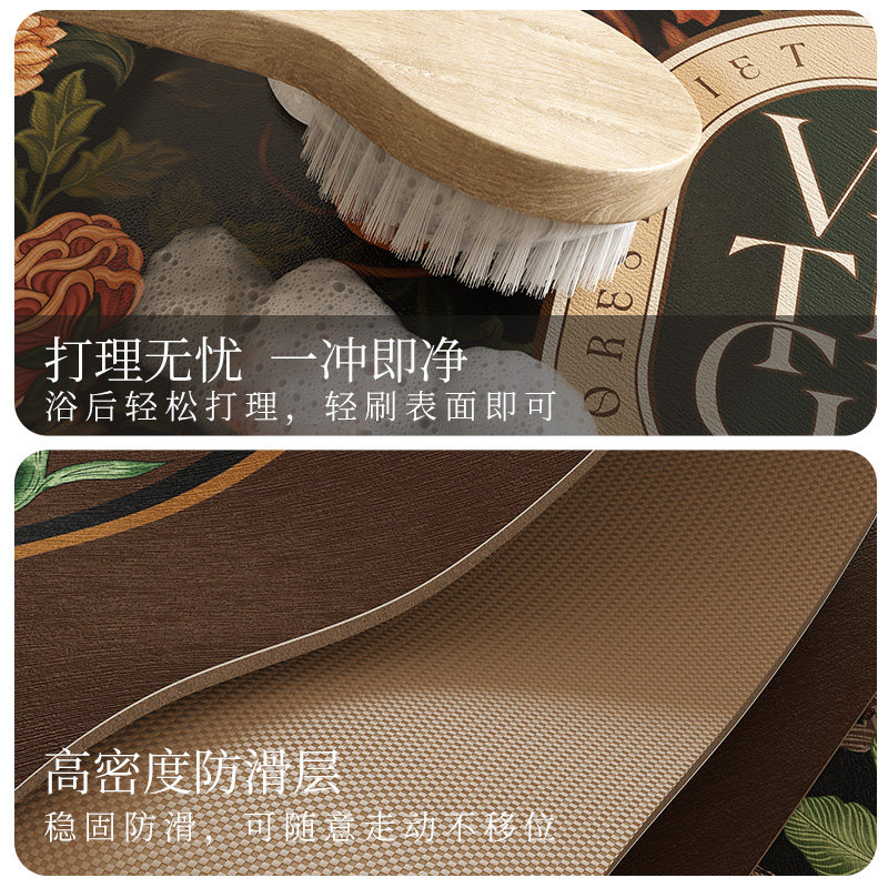 浴室地垫卫生间门口防滑垫吸水垫子硅藻泥家用脚垫淋浴房 复古法式