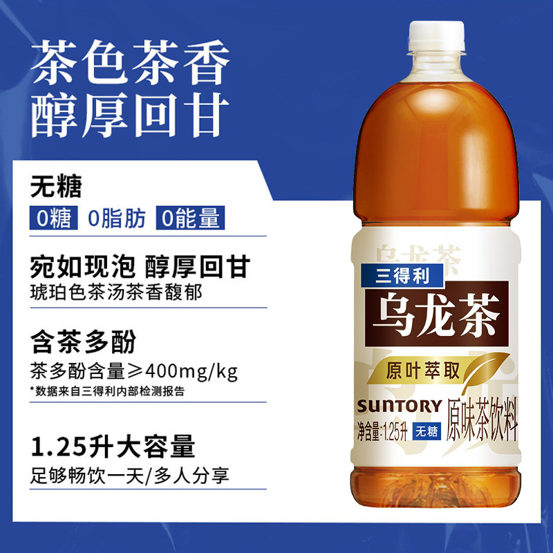 三得利无糖茶无糖乌龙茶饮料1.25L 6瓶整箱囤货装由