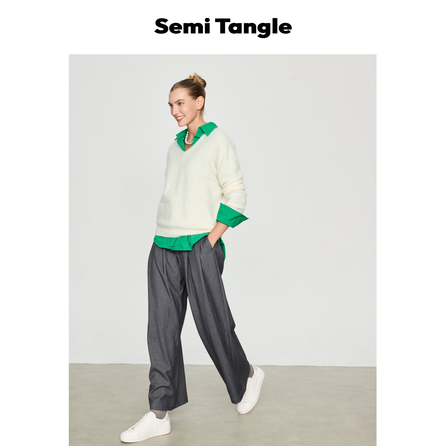 Semi 羊毛羊绒混纺拉毛V领针织套头上衣 Tangle春秋新品由