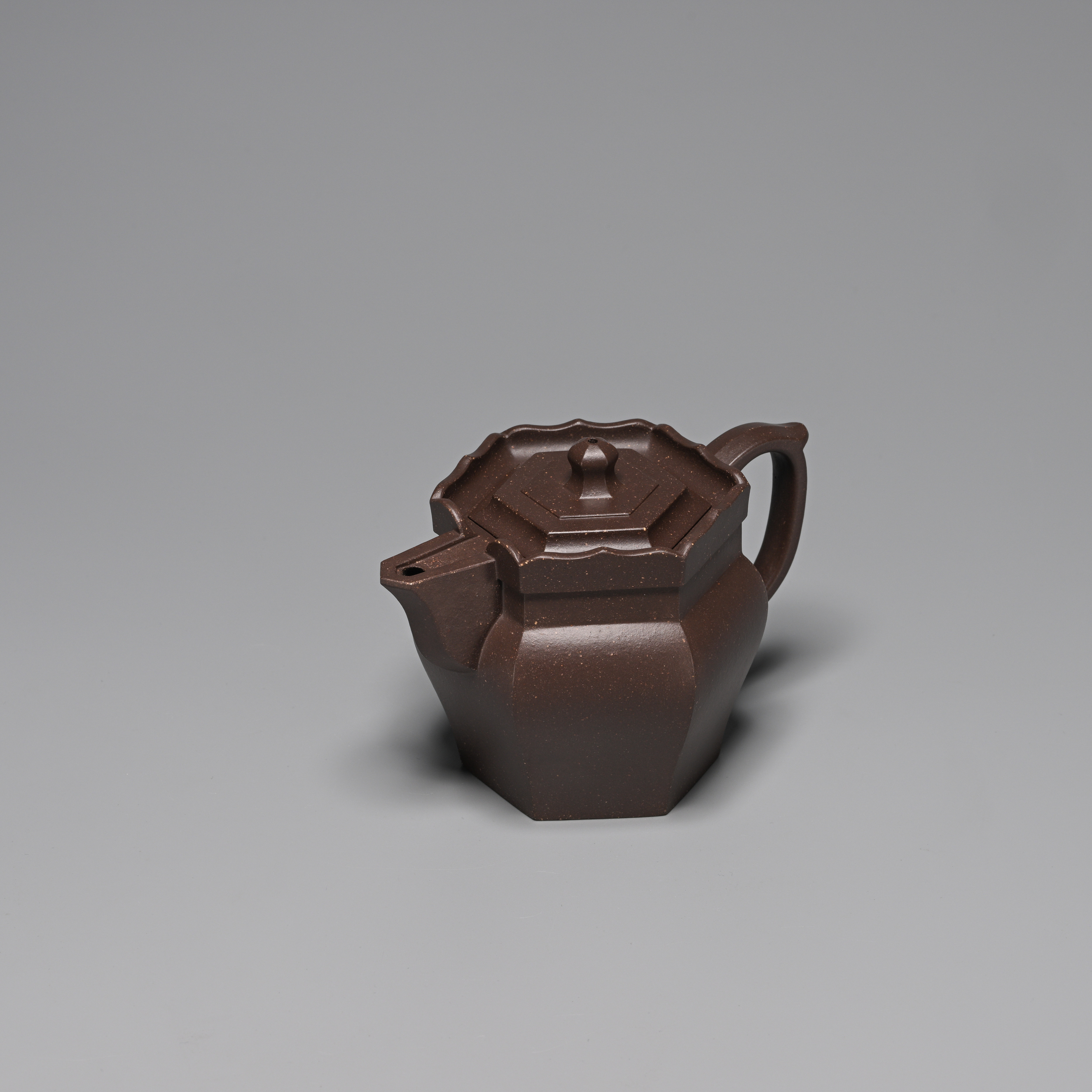 铁画轩全手工老块头天青泥紫砂壶260cc 稀雀·僧帽