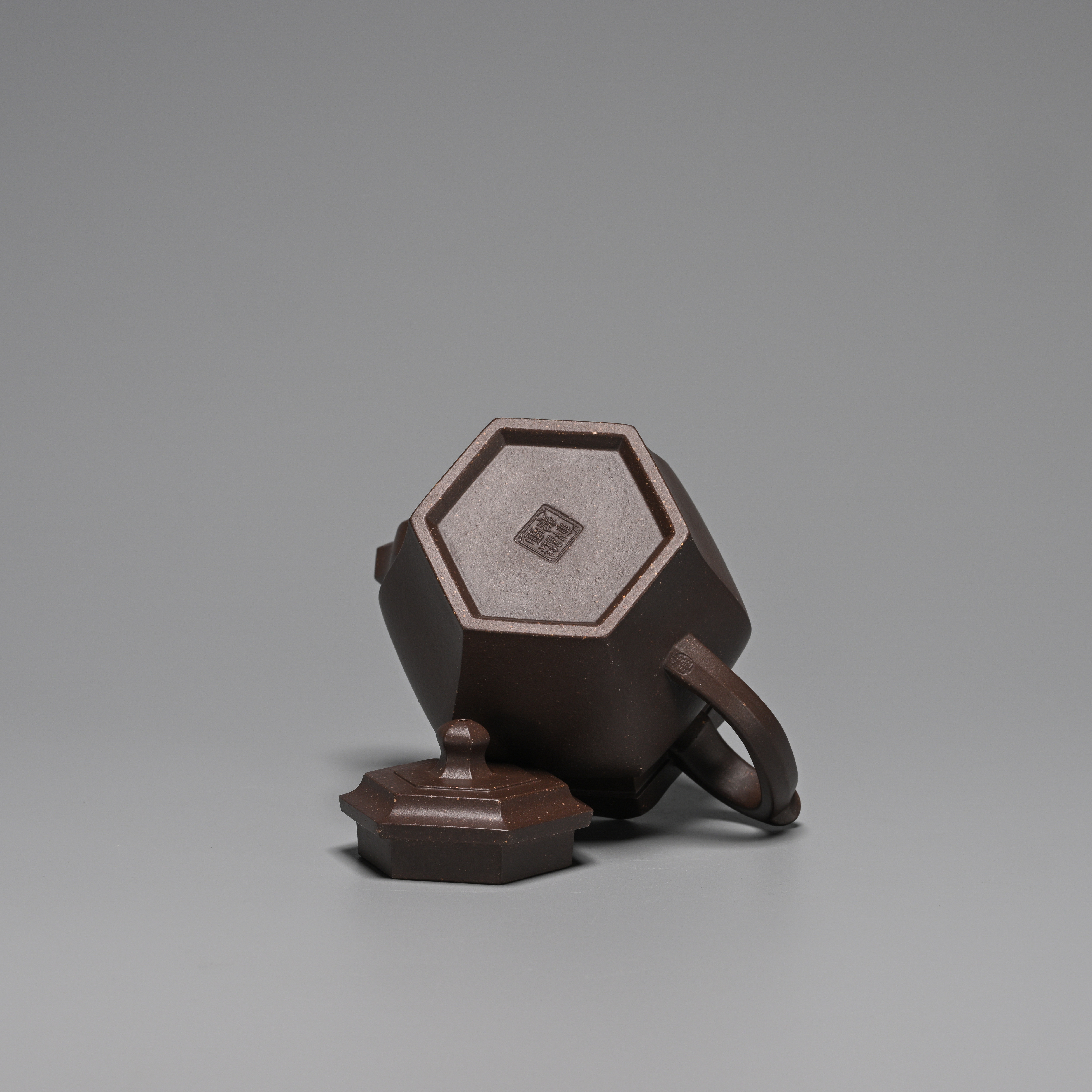 铁画轩全手工老块头天青泥紫砂壶260cc 稀雀·僧帽由