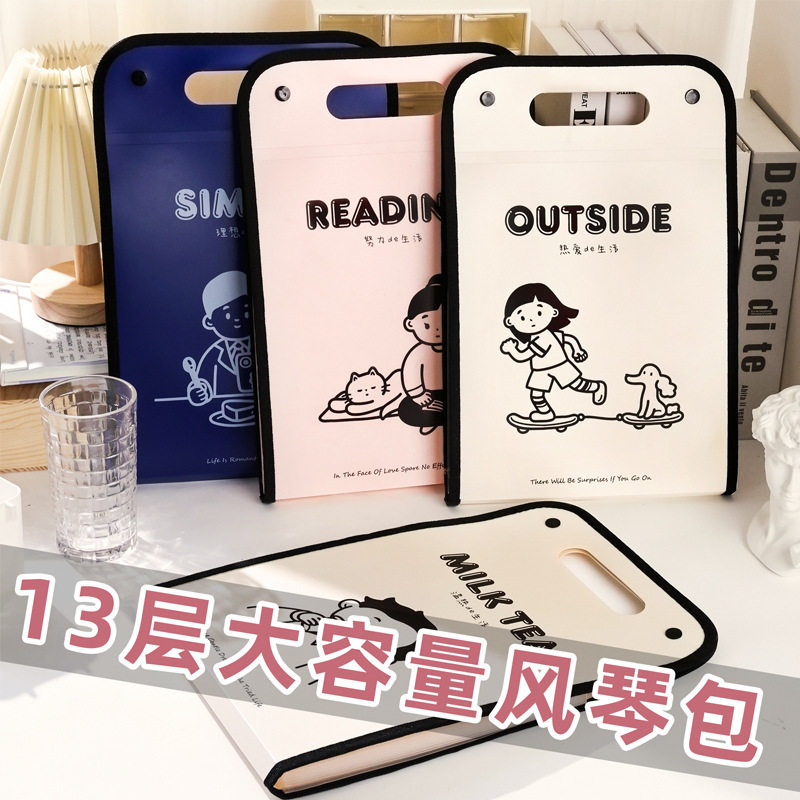 13入风琴包 创意唯美简约卡通小清新学生多层文件袋资料夹手提事务包A4 冬日之前 初品