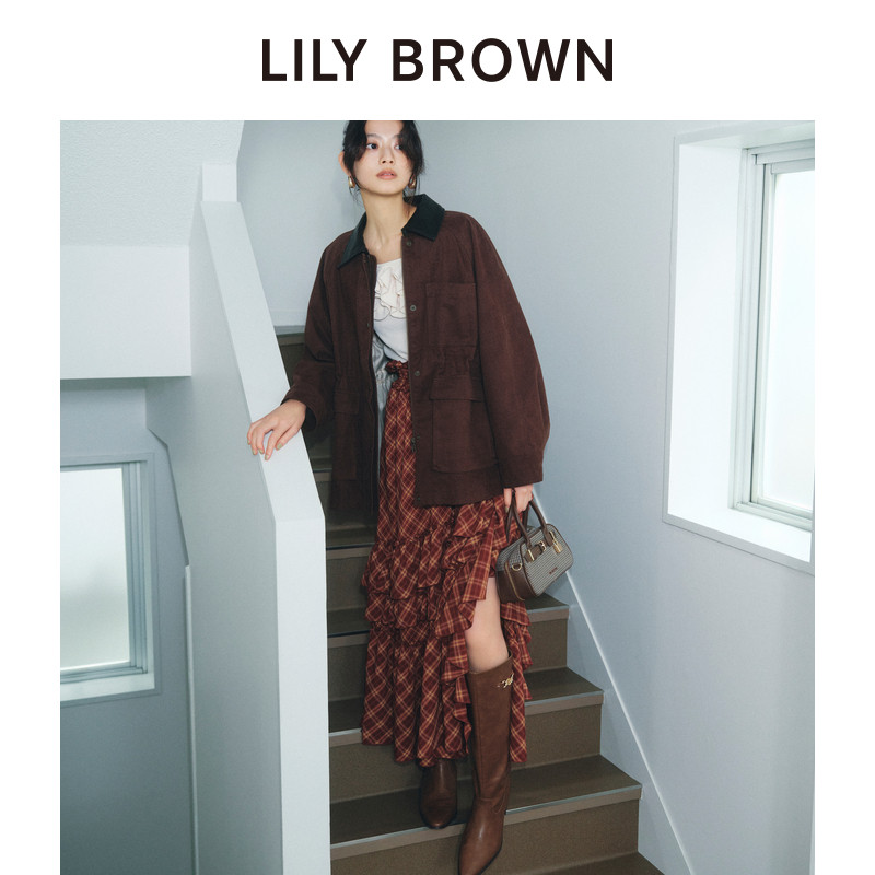 LILY 甜美高腰荷叶边开叉A字半身裙LWFS254097 BROWN秋冬款